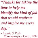 The Career Initiative® Assessment helps you determine which of 15 key initiatives is best to focus on NOW. This unique tool - available online - is used by hundreds of thousands of people to take charge of their career.
